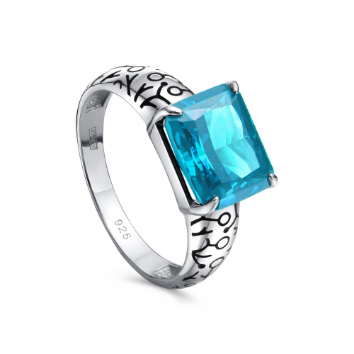 Серебряное кольцо с голубым бриллианитом — это утонченное украшение, которое сочетает в себе элегантность и шик