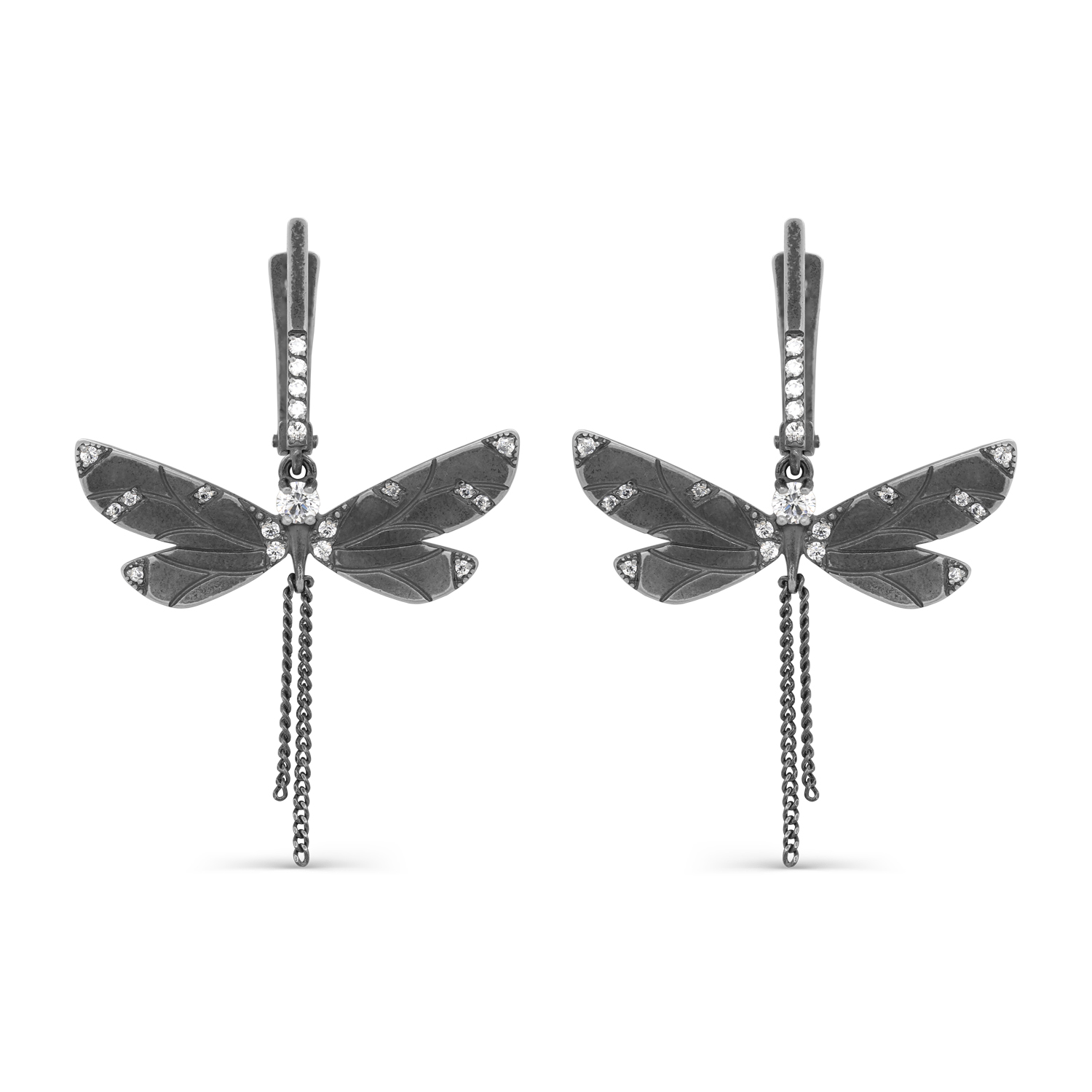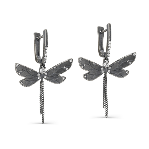 Удлинённые серебряные серьги из чистой 925 пробы имеют оригинальный дизайн, вдохновленный образом стрекозы