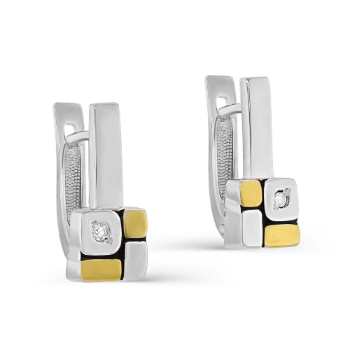 Серебряные серьги 925 пробы оснащены настоящими бриллиантами и покрыты жёлтой эмалью, что придаёт им исключительную ценность и характерный шарм