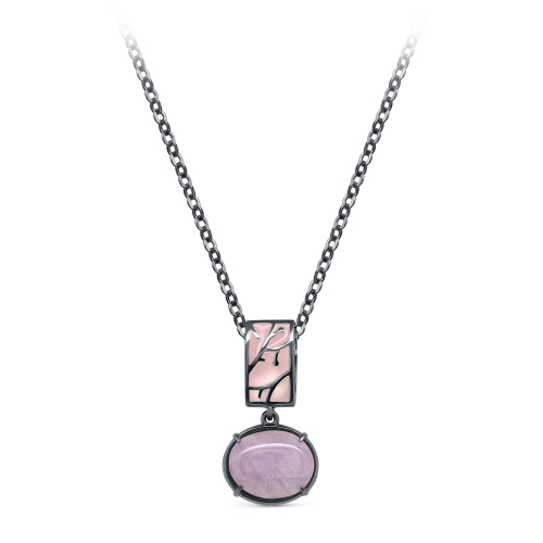Нежное серебряное колье из серебра 925 пробы украшено элегантным кунцитом и яркой эмалью