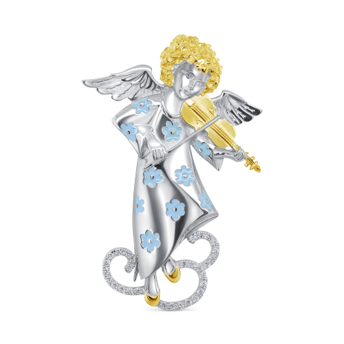 Изящная серебряная брошка из высококачественного серебра 925 пробы изображает очаровательного ангела, играющего на скрипке