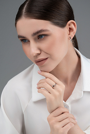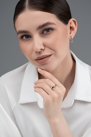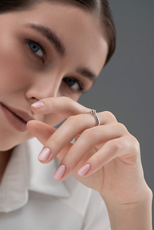 Помоловочное кольцо выполнено из благородного белого золота 585 пробы и украшено великолепным бриллиантом идеальной огранки