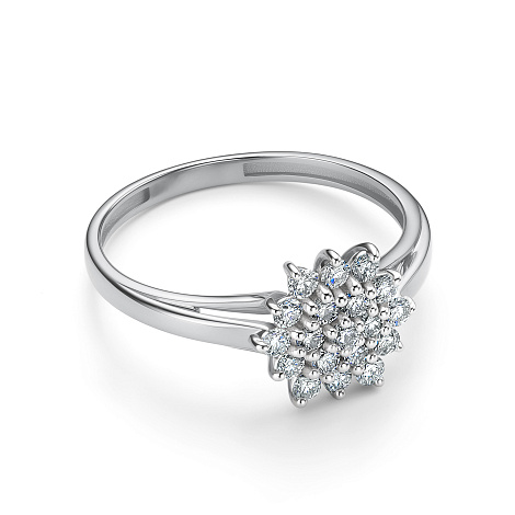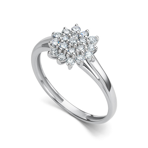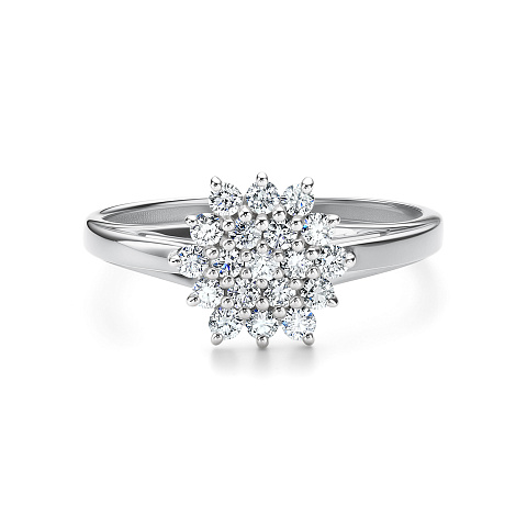 Изящное кольцо из белого золота 585 пробы, украшенное сверкающей россыпью бриллиантов, притягивает взгляд и восхищает своей красотой
