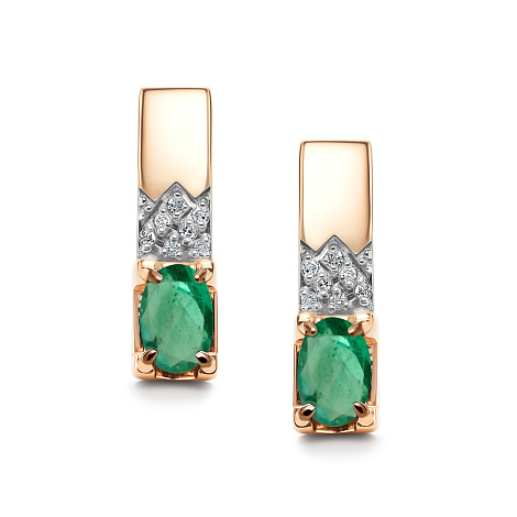 Элегантные серьги выполнены из красного и белого золота 585 пробы, соединяющих в себе благородство, изящество и роскошь. Ключевыми элементами дизайна являются изумруды и сверкающие бриллианты. Изумруды символизируют плодородие и рост, а их насыщенный зеленый цвет гармонично контрастирует с белым и красным оттенками золота. Английский замок обеспечивает комфорт и безопасность при ношении. Серьги выполнены с высоким уровнем мастерства и относятся к категории люксовых украшений, подчеркивая статус и вкус владельца. Представлено брендом АЛЬКОР. Средняя характеристика камней: 14 Бриллиант Круг 17 0.044 2/3, 2 Изумруд Овал 0.877 3/3 В комплект поставки входит:
