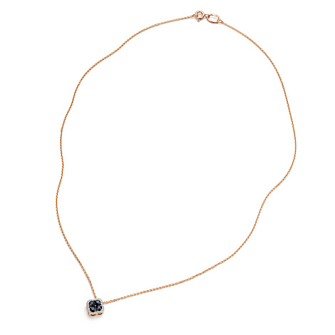 Элегантное цепочное колье выполнено из красного золота 585 пробы и украшено подвеской из красного и белого золота с сапфирами и бриллиантами