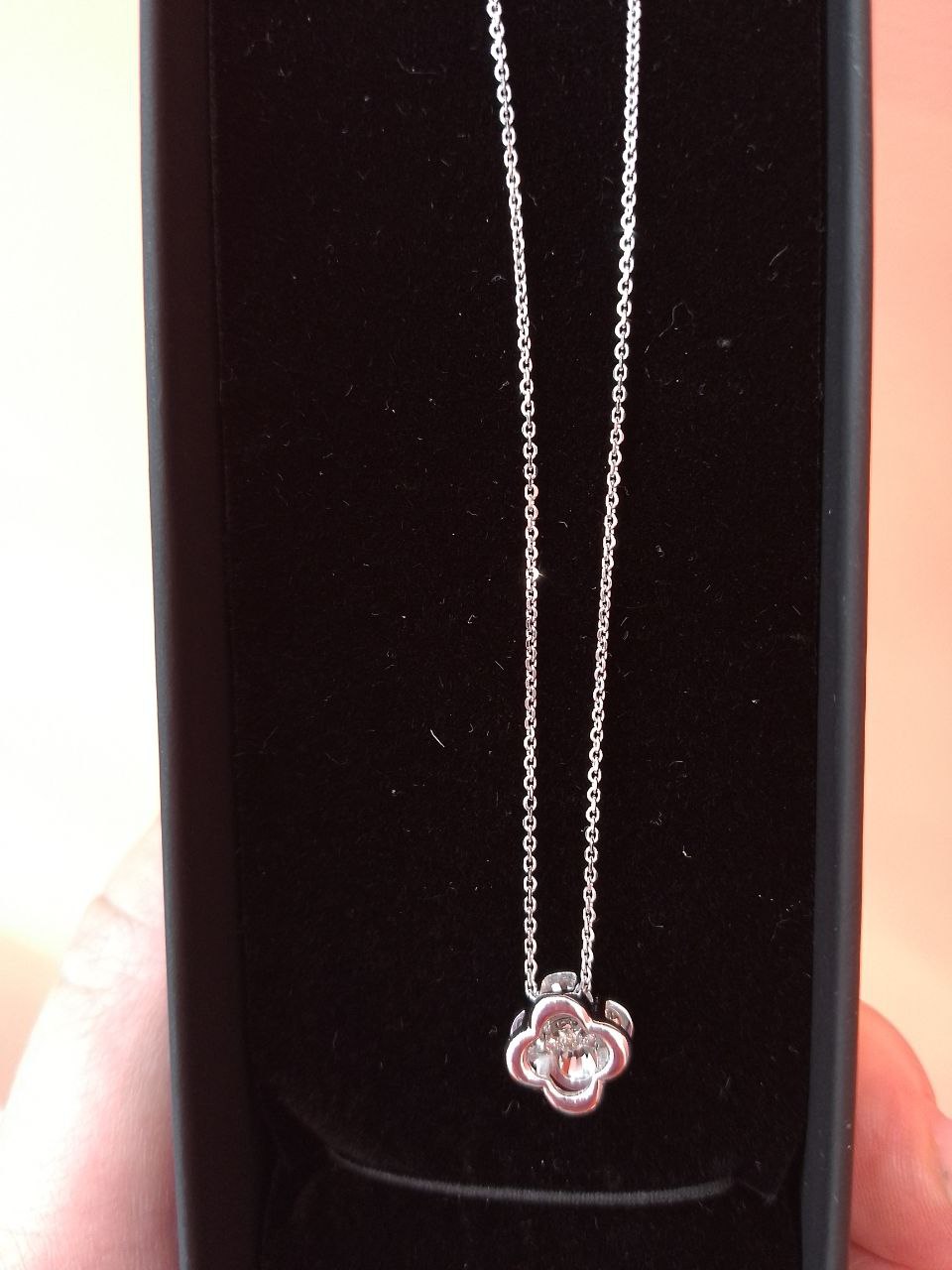 Изысканное колье в виде клевера в белом золоте с бриллиантом ! Прекрасный вариант на каждый день !