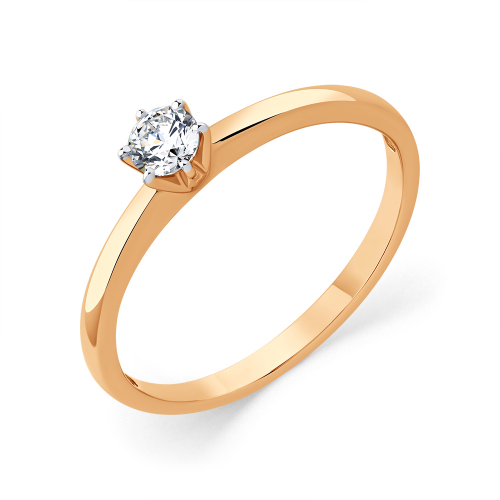 Элегантное помолвочное кольцо выполнено из красного золота 585 пробы и украшено центральным бриллиантом