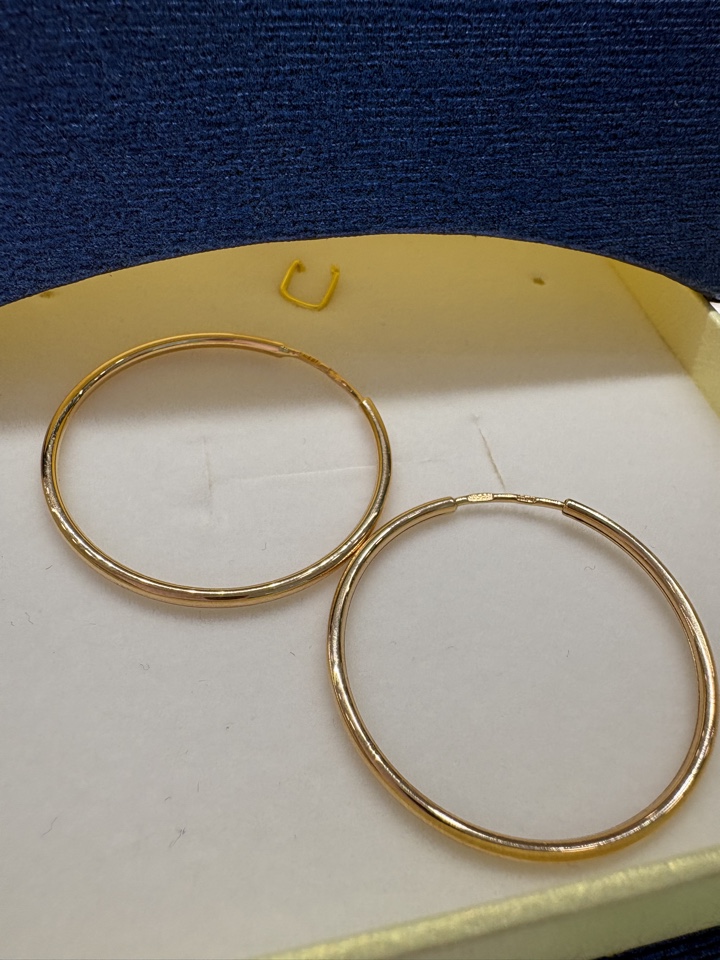 Серьги "конго", выполненные в форме колец, гладкие, полновесные, из золота 585 пробы