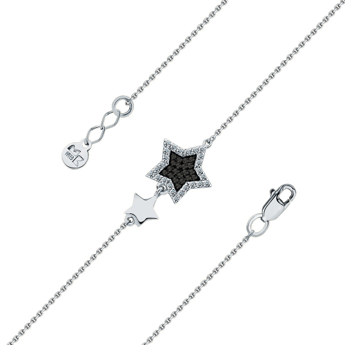Элегантный цепочный браслет из белого золота 585 пробы украшен стильными звездочками, инкрустированными контрастными черными и белыми бриллиантами