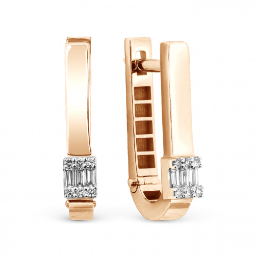 Элегантные серьги выполнены из красного и белого золота 585 пробы и украшены сверкающими бриллиантами. Сочетание двух оттенков золота придает изделиям изысканность и шарм, подчеркивая красоту и ценность камней. Надежный английский замок обеспечивает комфорт и безопасность при ношении. Эти серьги станут прекрасным дополнением к вашему образу, подчеркивая вашу индивидуальность и утонченный вкус. Представлено брендом PRIMO PREZIOSO. Средняя характеристика камней: 6 Бриллиант Бп-25 (90-60) 0,082Ct 3/4А ,4 Бриллиант Кр 57 (400-200) 0,021Ct 4/6А ,8 Бриллиант Кр 57 (400-200) 0,034Ct 4/6А В комплект поставки входит: