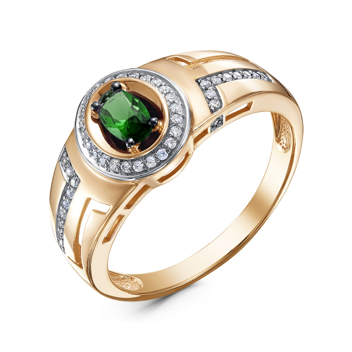 Изысканное кольцо выполнено из красного и белого золота 585 пробы и украшено великолепным изумрудом и сверкающими бриллиантами