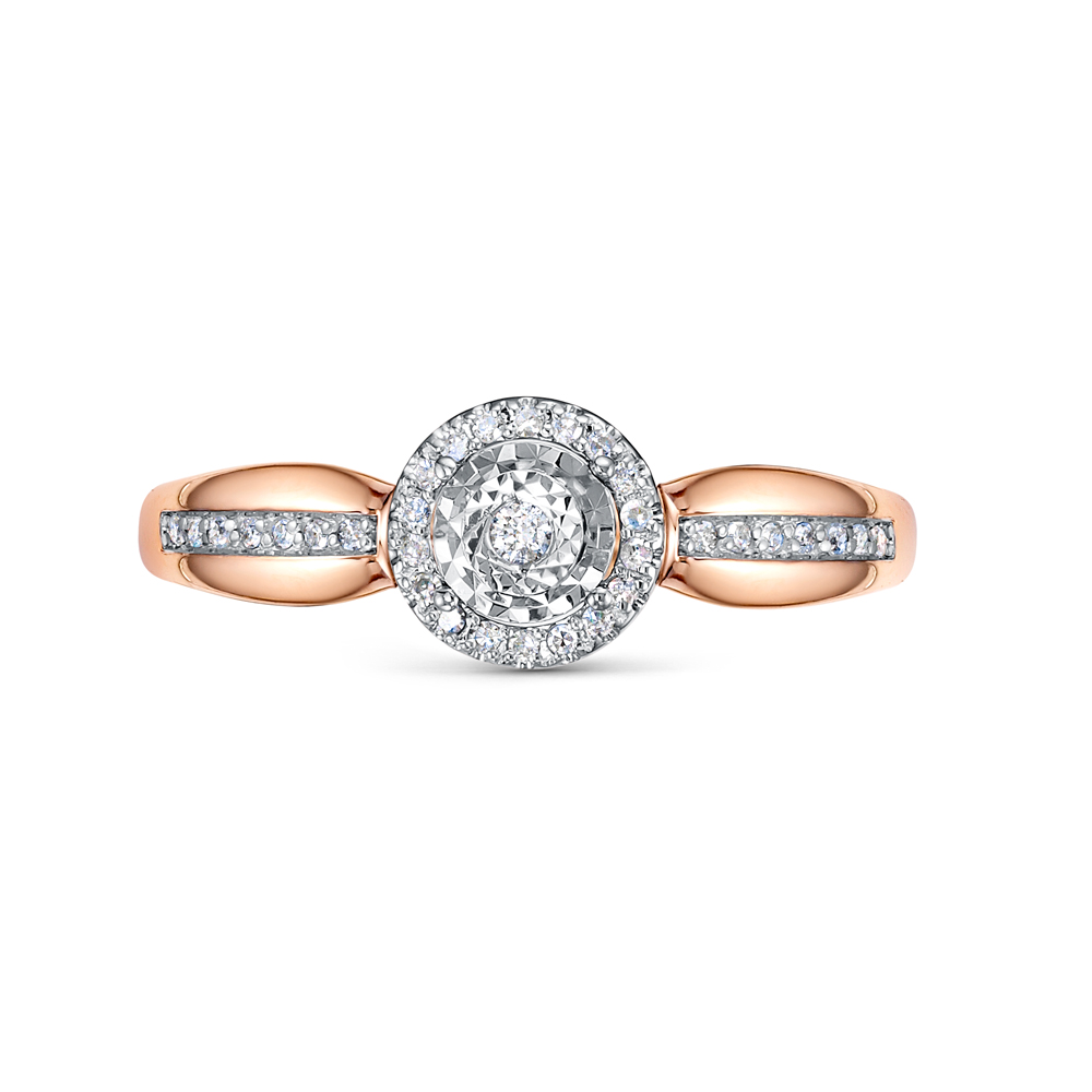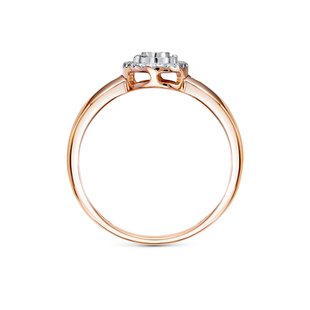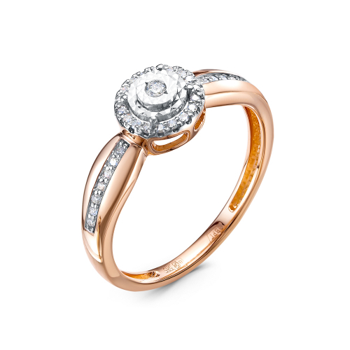 Элегантное кольцо выполнено из красного и белого золота 585 пробы и украшено сверкающими бриллиантами