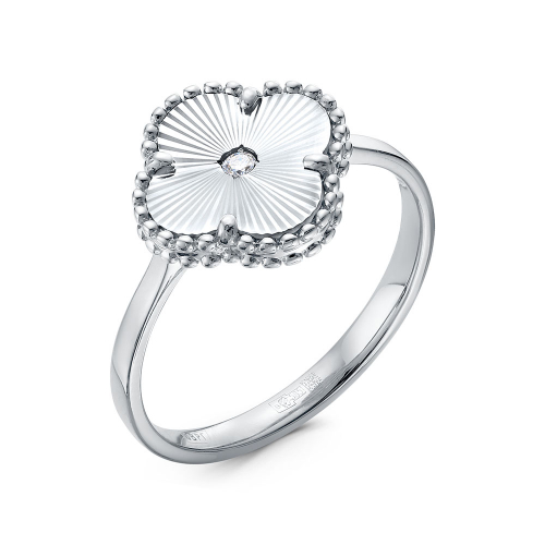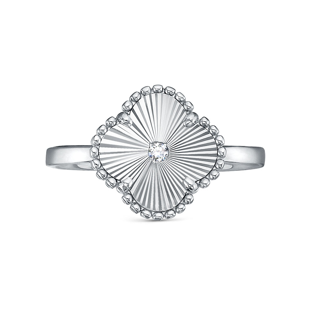 Элегантное кольцо выполнено из белого золота 585 пробы в легендарном стиле Van Cleef & Arpels и украшено сверкающим бриллиантом