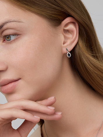 Элегантные серьги из белого золота 585 пробы украшены драгоценными сапфирами и сверкающими бриллиантами