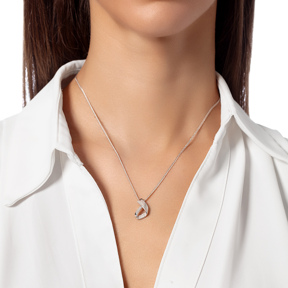 Элегантная подвеска выполнена из белого золота 585 пробы и украшена сверкающими бриллиантами