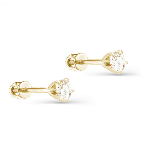 Роскошные серьги - пусеты, выполнены из жёлтого золота 585 пробы с великолепными бриллиантами цвета шампань. Украшение покрыто родием. Родий - драгоценный металл платиновой группы, который делает золото устойчивым к повреждениям, не вызывает аллергии и дарит искрящийся блеск.