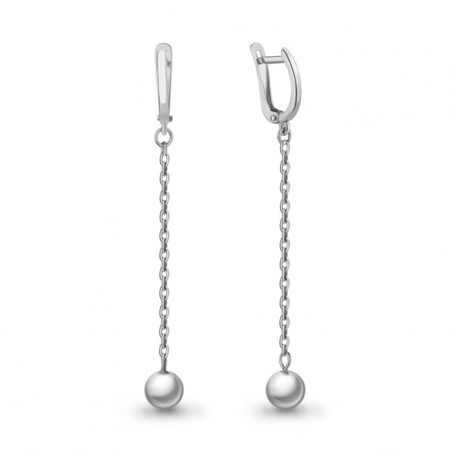 Удлиненные серебряные серьги выполнены из качественного серебра 925 пробы и украшены подвесными шариками на цепочках