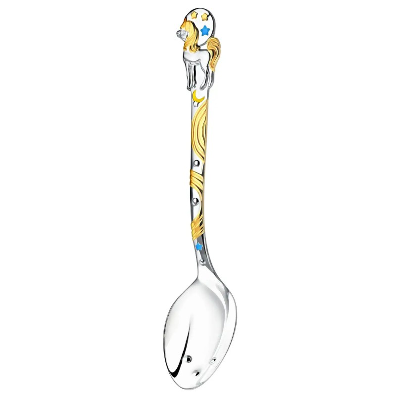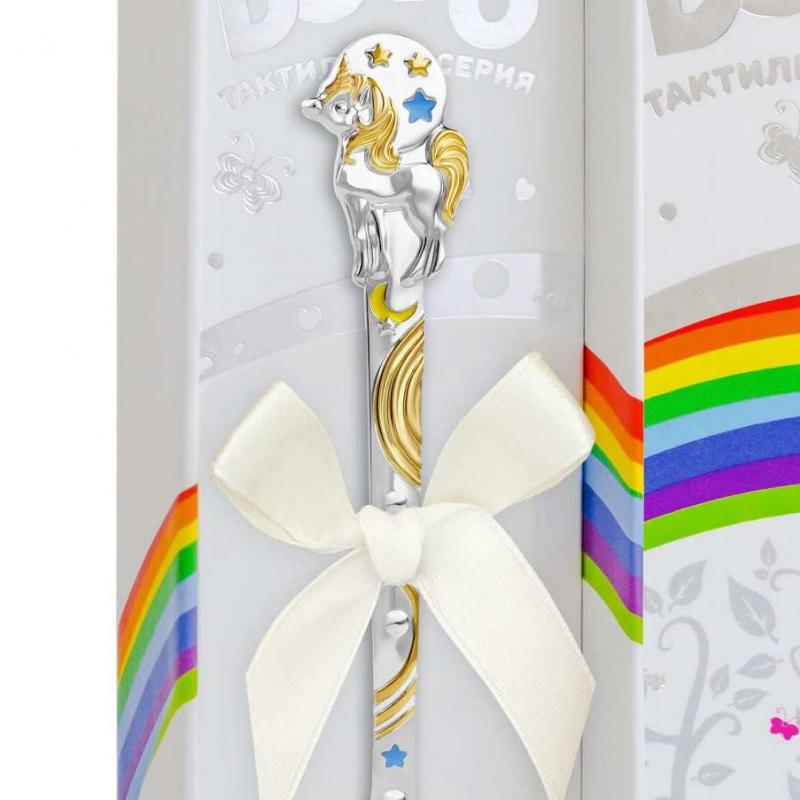 Яркая детская ложка Do-Do "Единорог" с голубой звездочкой выполнена из чистого серебра 925 пробы без примесей посторонних металлов и без применения гальванического покрытия