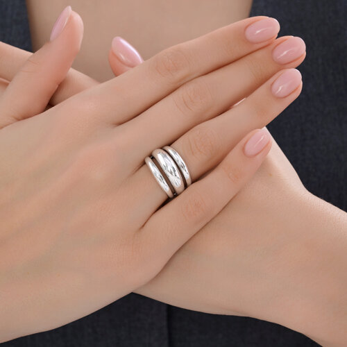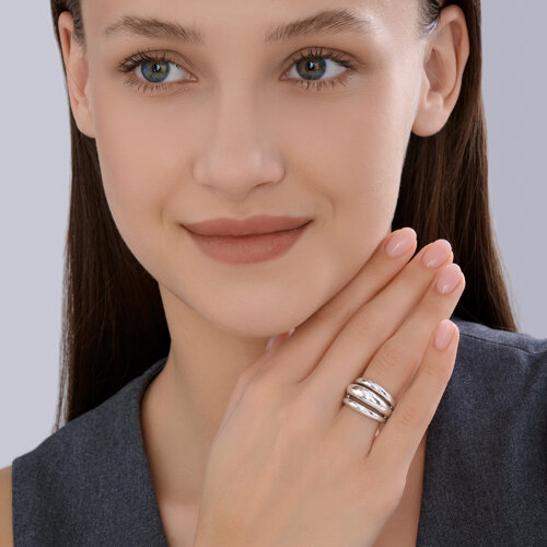 Объемное серебряное кольцо из качественного 925 пробы отличается многослойностью и трехмерностью