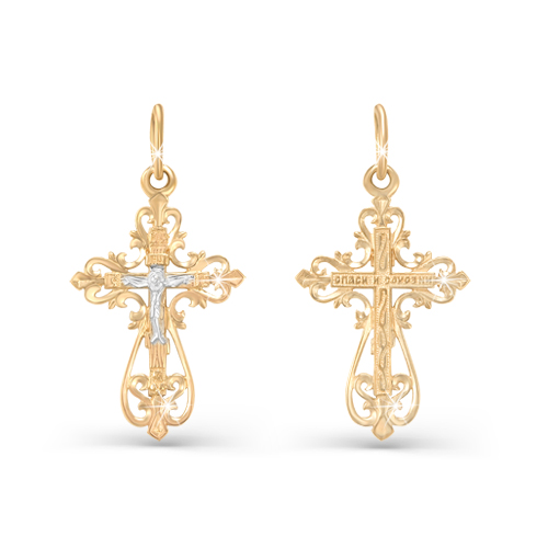 Православный крестик выполнен из красного и белого золота 585 пробы, что придает ему изысканность и благородство
