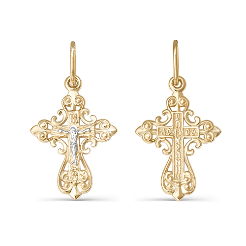 Православный крестик выполнен из красного и белого золота 585 пробы, что придает ему изысканность и благородство