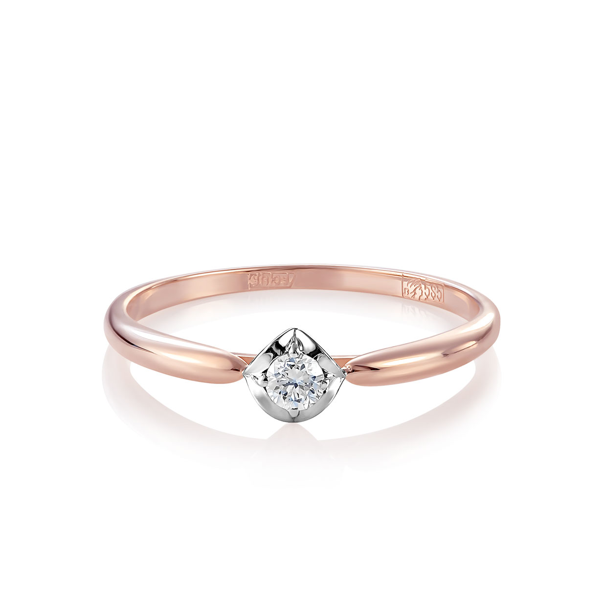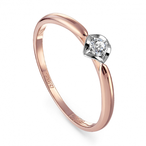 Помолвочное кольцо с сверкающим бриллиантом выполнено с сочетанием красного и белого золота 585 пробы