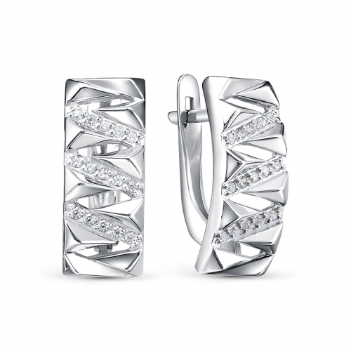 Элегантные серебряные серьги выполнены в геометрическом дизайне, оснащены надежным английским замком и украшены сверкающими фианитами