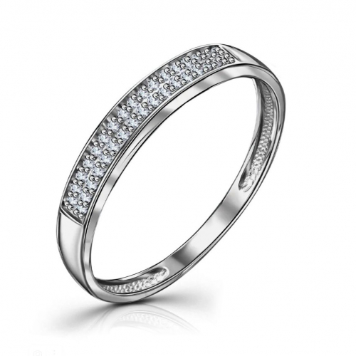 Элегантное кольцо выполнено из белого золота 585 пробы и украшено сверкающей дорожкой из бриллиантов