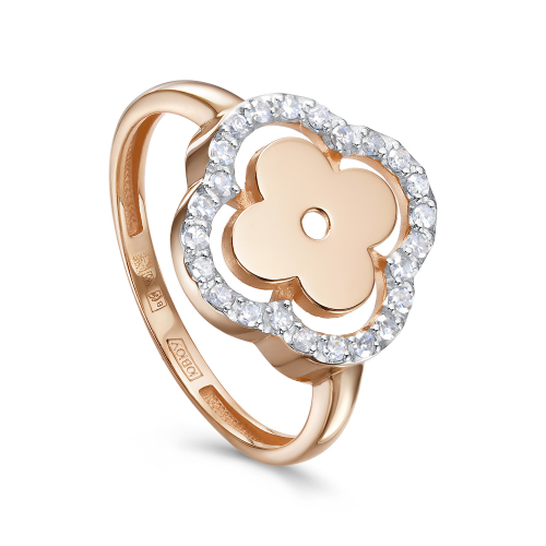 Элегантное кольцо выполнено из красного и белого золота 585 пробы и украшено сверкающими бриллиантами