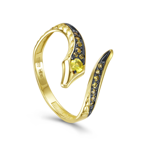 Изящное кольцо выполнено из желтого золота 585 пробы в виде змеи и украшено яркими желтыми сапфирами