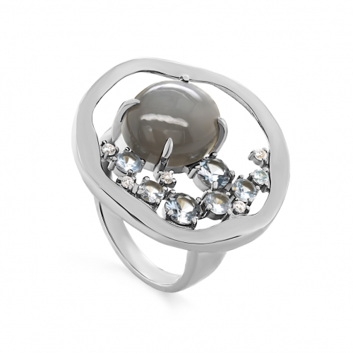 Изящное серебряное кольцо из 925 пробы украшено нежным лунным камнем и сверкающими фианитами
