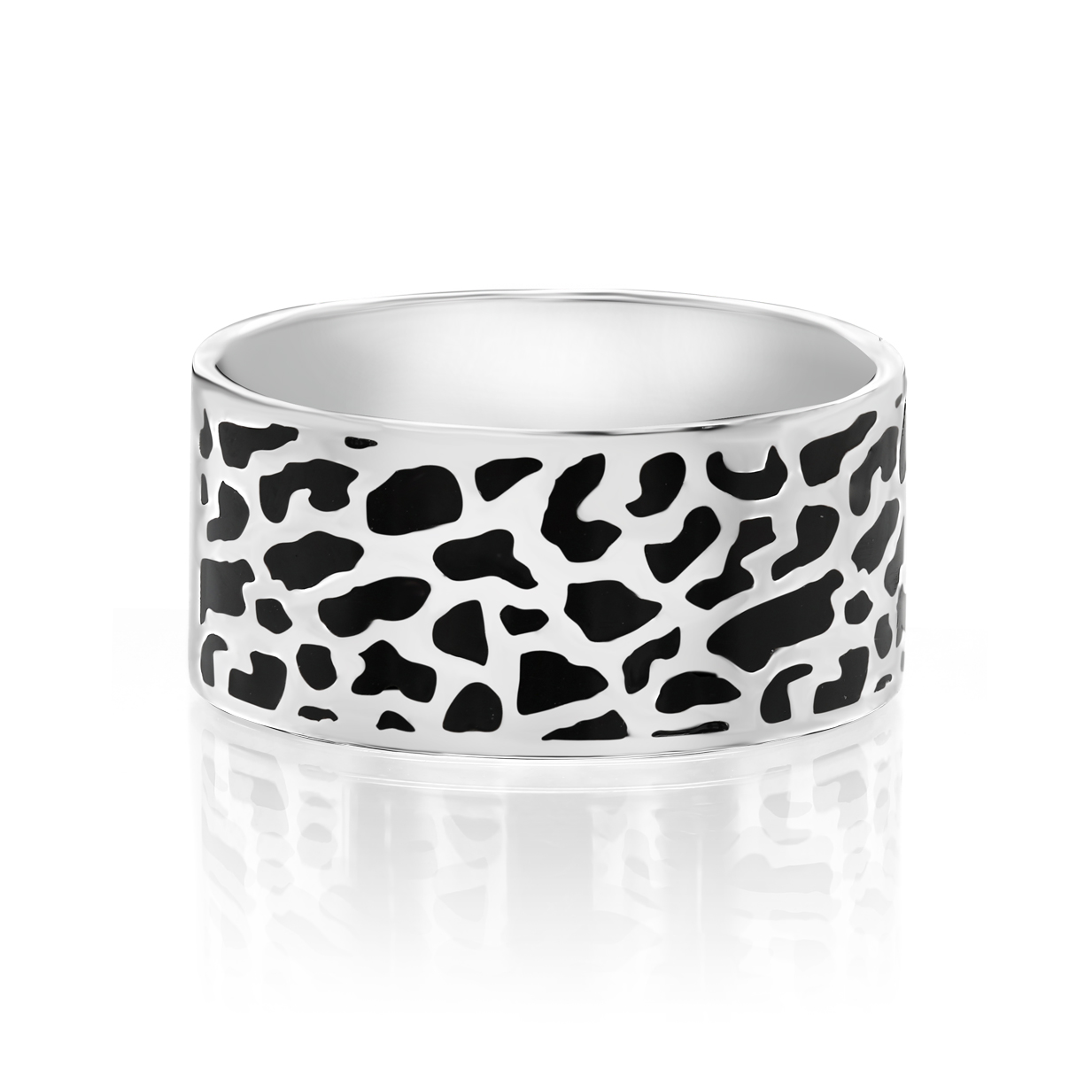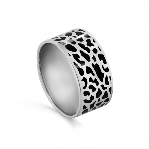 Широкое серебряное кольцо из 925 пробы украшено ярким леопардовым узором, выполненным из цветной эмали
