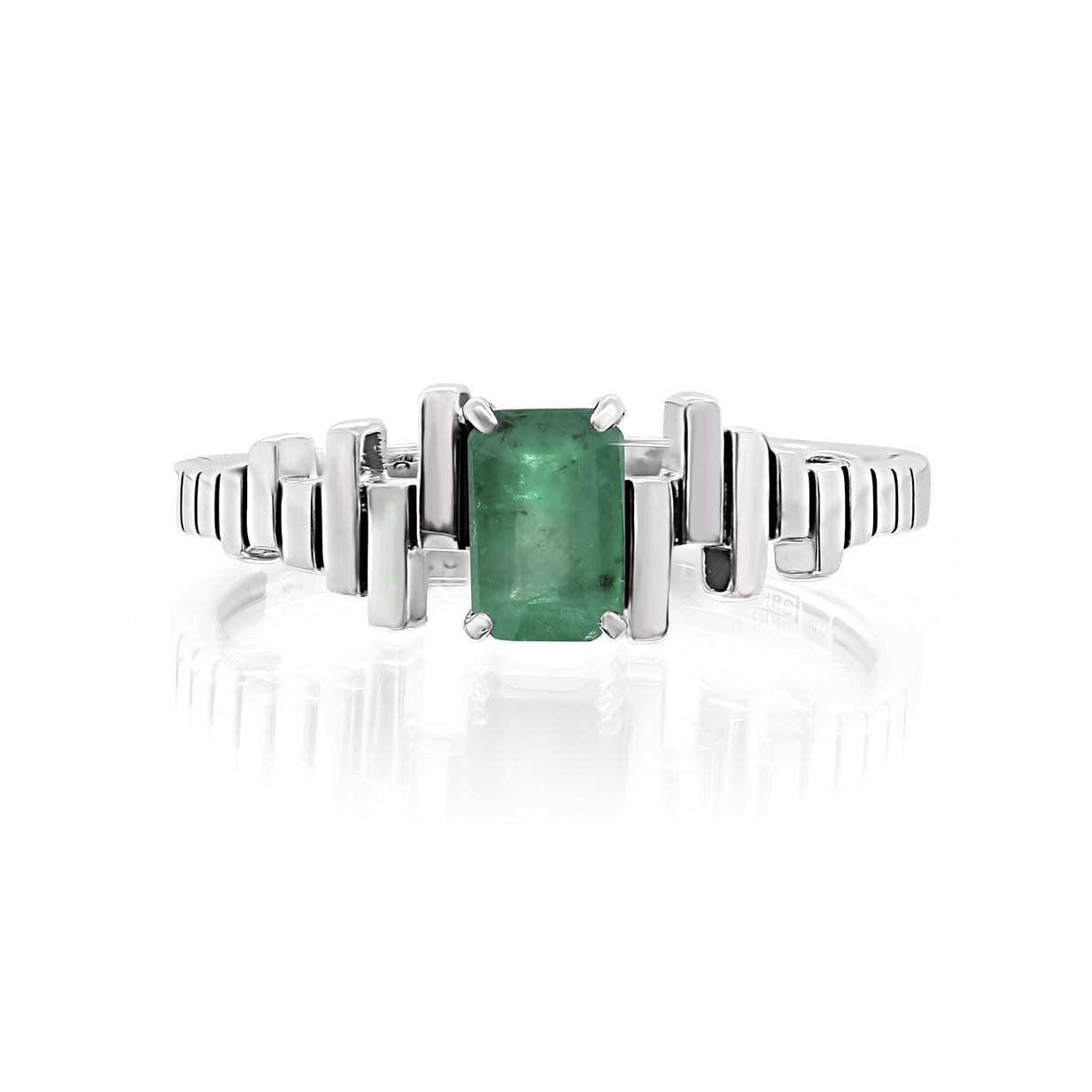 Элегантное серебряное кольцо из 925 пробы украшено сверкающим изумрудом