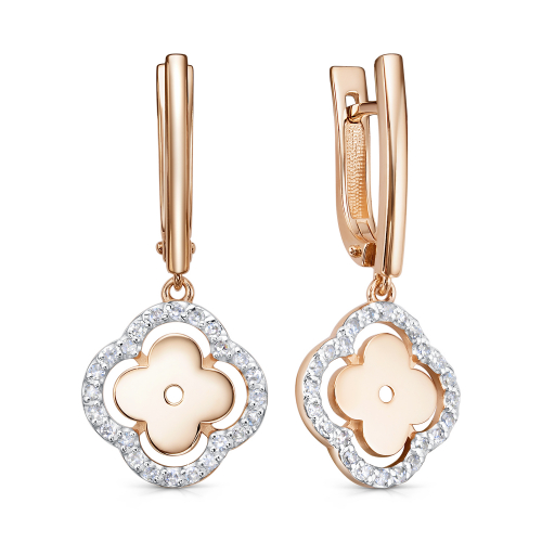 Золотые серьги нежнейшего дизайна из красного и белого золота 585 пробы покорят сердца своей утонченностью и элегантностью