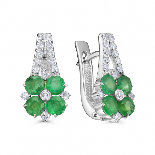 Уникальные серьги из прекрасного белого золота 585 пробы, искусно инкрустированные чистейшими изумрудами и сверкающими бриллиантами