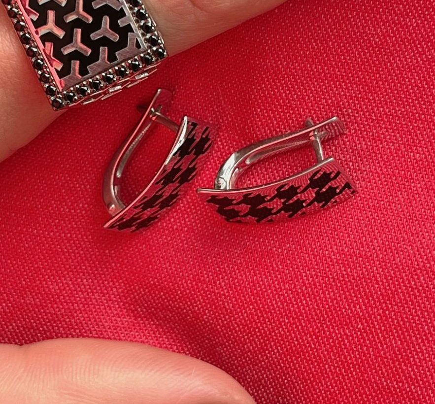 Серебряные серьги из высококачественного серебра 925 пробы отличаются привлекательным дизайном с узором. Черная эмаль создает красивый контраст с металлическим блеском серебра, делая украшение особенно выразительным. Надежный английский замок обеспечивает удобную фиксацию и долгое сохранение первоначального вида изделия. Серёжки станут гармоничным дополнением вашего образа, привнося в него элемент эксклюзивности и элегантности. Представлено брендом KABAROVSKY. В комплект поставки входит: