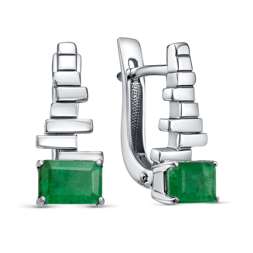 Стильные и привлекательные серьги из качественного серебра 925 пробы с декоративными вставками из чистых изумрудов