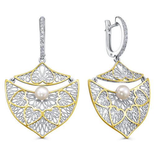 Серьги, серебро, жемчуг, проба 925