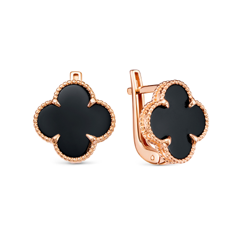 Стильные серьги из красного золота 585 пробы с чёрным ониксом