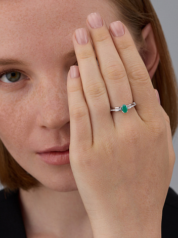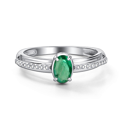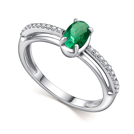Изящное кольцо из серебра 925 пробы украшено чистым зелёным изумрудом и сияющими фианитами