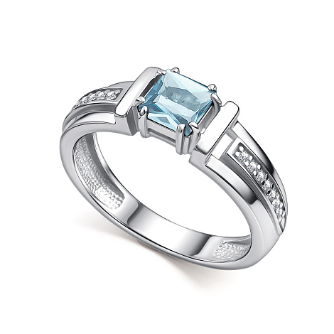 Кольцо из серебра с голубым топазом и фианитами — это сочетание природной магии и ювелирного искусства