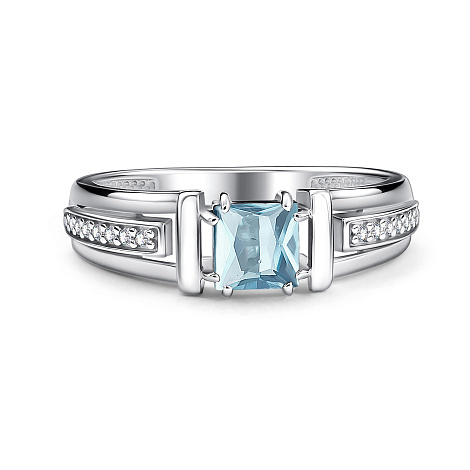 Кольцо из серебра с голубым топазом и фианитами — это сочетание природной магии и ювелирного искусства. Голубой топаз завораживает своим цветом и прозрачностью, а фианиты добавляют кольцу блеска и роскоши. Серебро 925 пробы подчеркивает благородство и природную красоту камней, создавая гармоничное и стильное украшение. Такое кольцо станет выразительным акцентом, отражающим индивидуальность и утончённый вкус своей обладательницы. Представлено брендом АЛЬКОР. Средняя характеристика камней: 1 Топаз Sky Blue Голубой Квадрат 0,8, 14 Фианит Белый Круг 0,126 В комплект поставки входит: