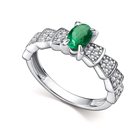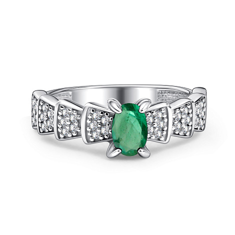 Серебряное кольцо 925 пробы с изумрудом и фианитами — это элегантное украшение, воплотившее в себе природную красоту и мастерство ювелиров