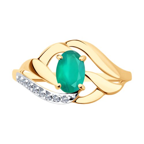Кольцо, комбинированное золото, агат, проба 585