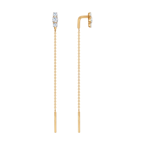 Изящные серьги-продёвки из золота с фианитами. При движении цепочки они покачиваются и, попадая на свет, красиво сияют, создавая эффект живого мерцания. Такой дизайн придаёт украшению динамику и лёгкость, делая его идеальным для повседневного и вечернего образа. Представлено брендом SOKOLOV. В комплект поставки входит: