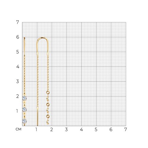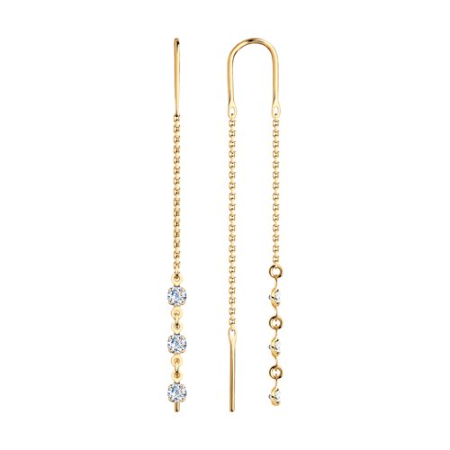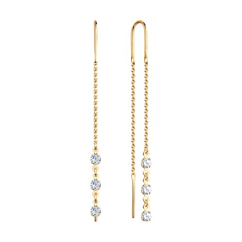 Серьги-цепочки из красного золота 585 пробы с тремя фианитами