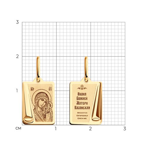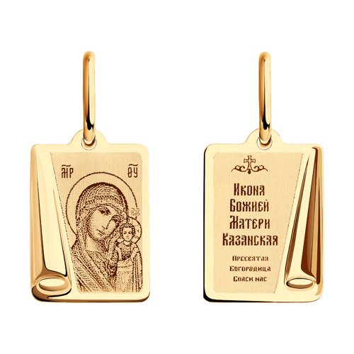 Подвеска - Икона Божьей Матери, Казанская, в которой исполнены все каноны Православной Церкви, выполнена из красного золота 585 пробы с лазерной обработкой