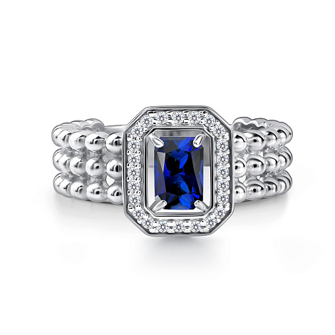 Кольцо из серебра 925 пробы с сапфиром и фианитами сочетает в себе элегантность и изысканность