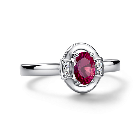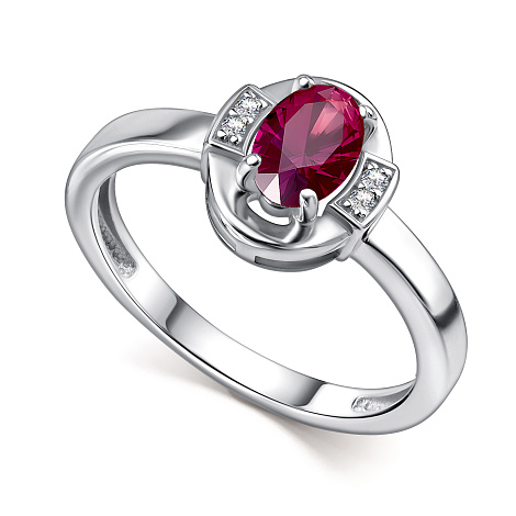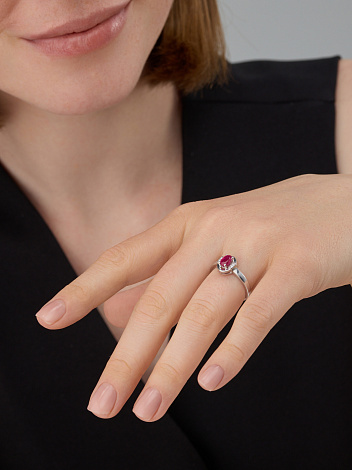 Серебряное кольцо 925 пробы с рубином и фианитами сочетает в себе благородство металла и яркость самоцветов