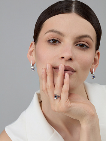 Удлинённые серебряные серьги с сапфиром поражают нестандартным исполнением и эксцентричностью
